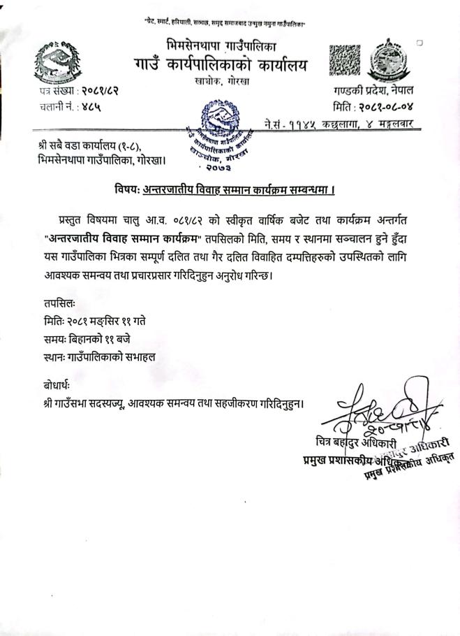 » अन्तरजातीय विवाह सम्मान कार्यक्रम सम्वन्धी सुचना ।