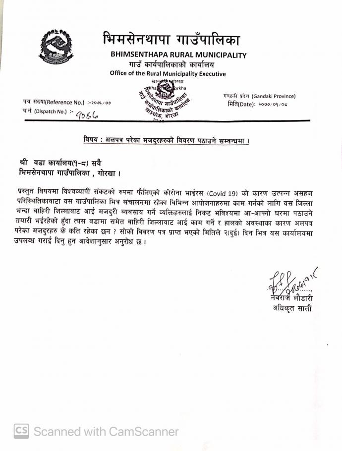 » अलपत्र परेका मजदुरहरुको विवरण पठाउने सम्बन्धमा श्री वडा कार्यालय (१-८) सबै !!