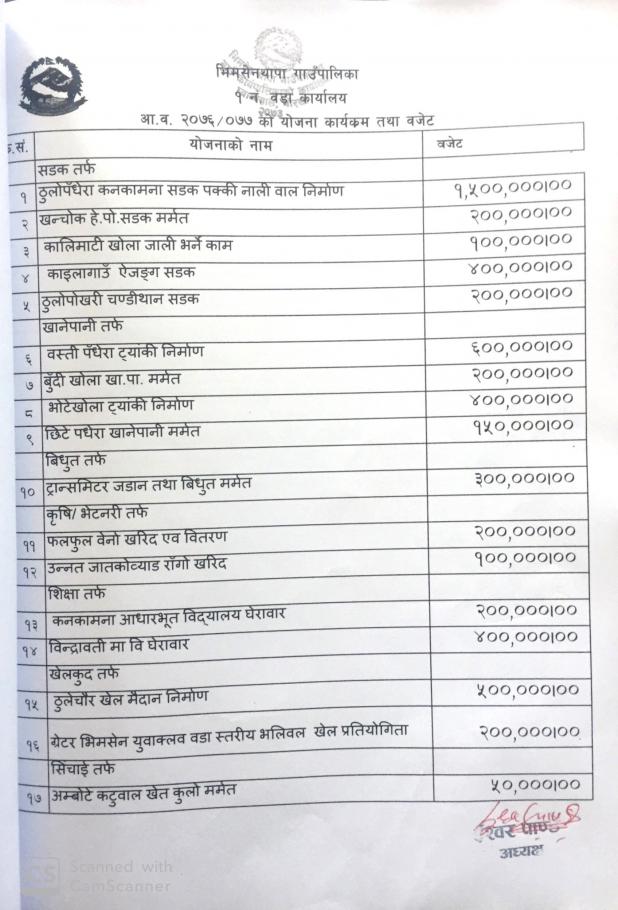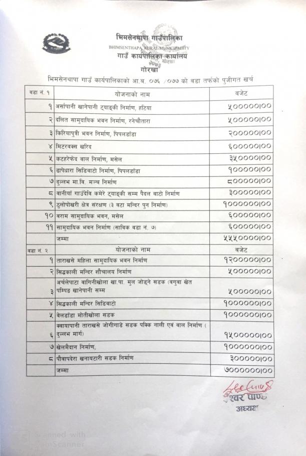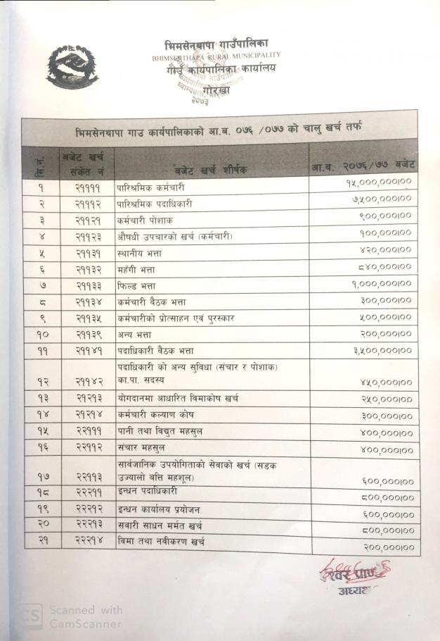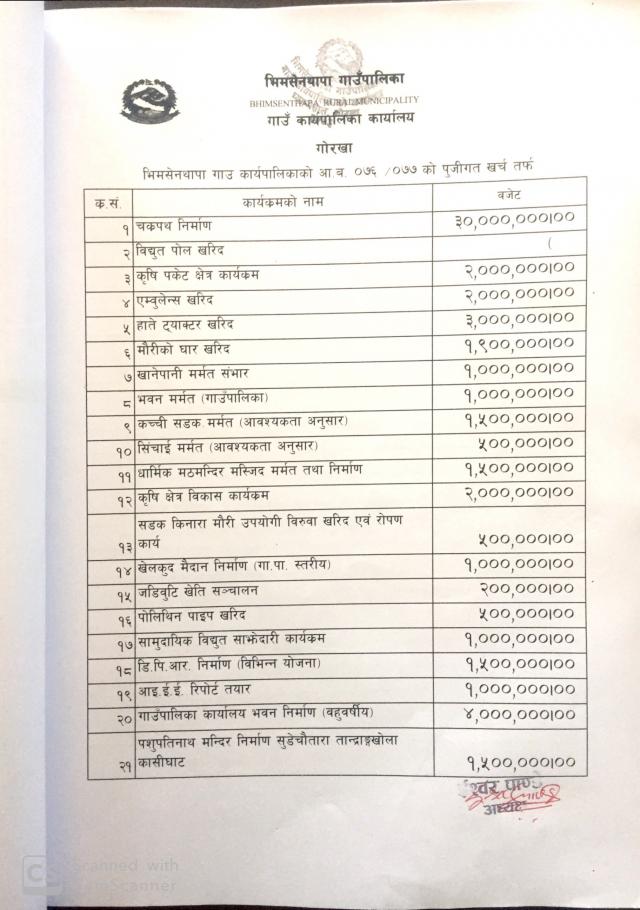 आ.व.२०७६/०७७ को वार्षिक बजेट तथा कार्यक्रम विवरण