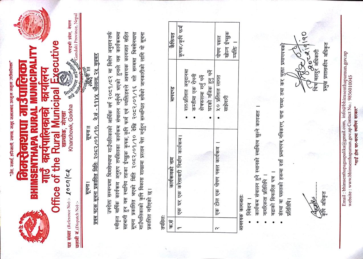 करेसाबारी निर्माण तथा पोषण पसल कार्यक्रमका लागि प्रस्ताव आव्हान सम्बन्धी सूचना।
