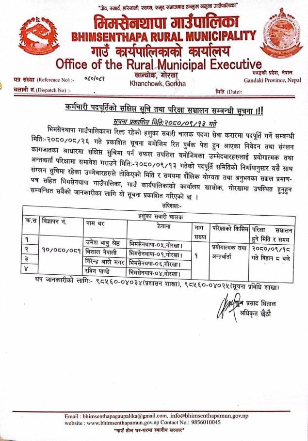 कर्मचारी पदपूर्तिको परिक्षा संचालन सम्बन्धी सुचना !