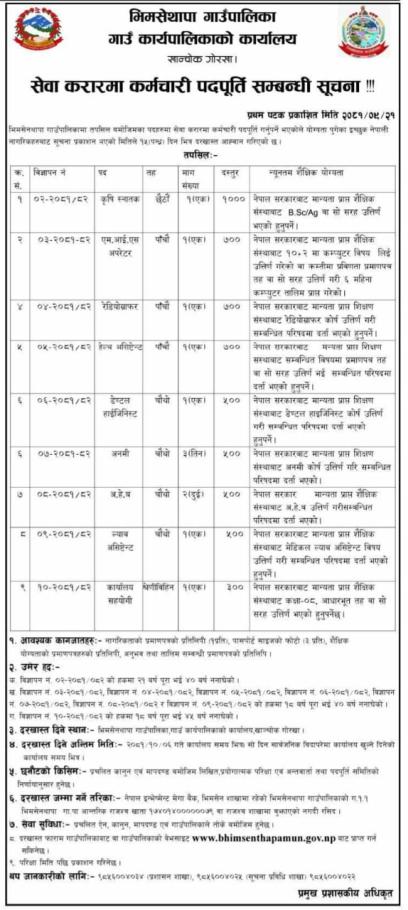 कर्मचारी पदपूर्तिको सम्क्षिप्त सूचि तथा परिक्षा संचालन सम्बन्धी सूचना।