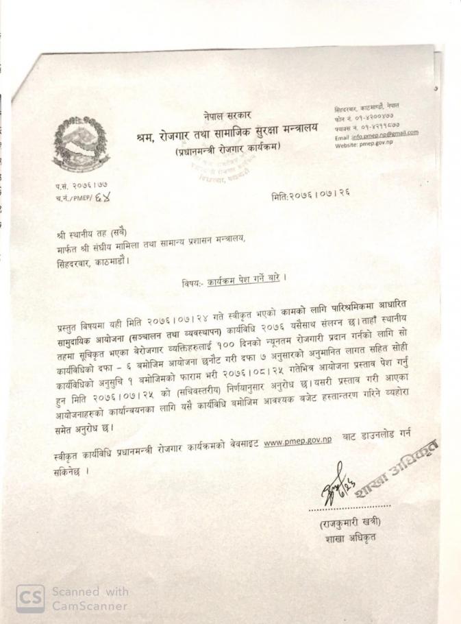 योजना सम्झौता गर्न पठाउने सम्बन्धमा ( श्री १,३,४,५,वटा वडा कार्यालयहरु )!!!