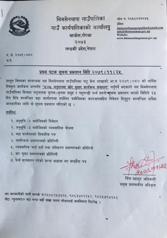 जानकारी सम्बन्धमा श्री वडा कार्यालय सबै भिमसेनथापा गाउँपालिका