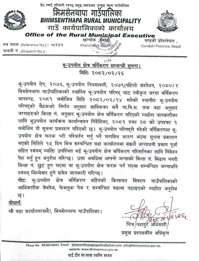 जग्गा वर्गिकरण सम्बन्धी सुचना ।