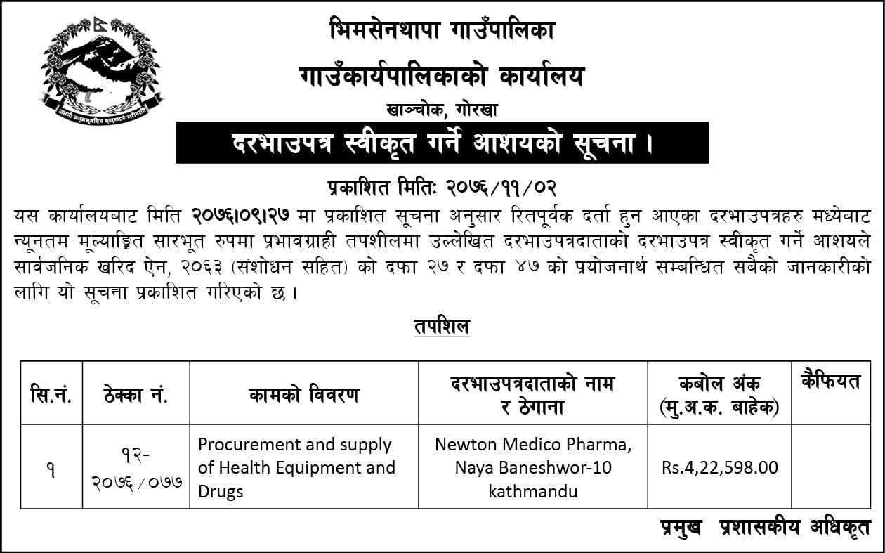 जानकारी सम्बन्धमा श्री वडा कार्यालय सबै भिमसेनथापा गाउँपालिका