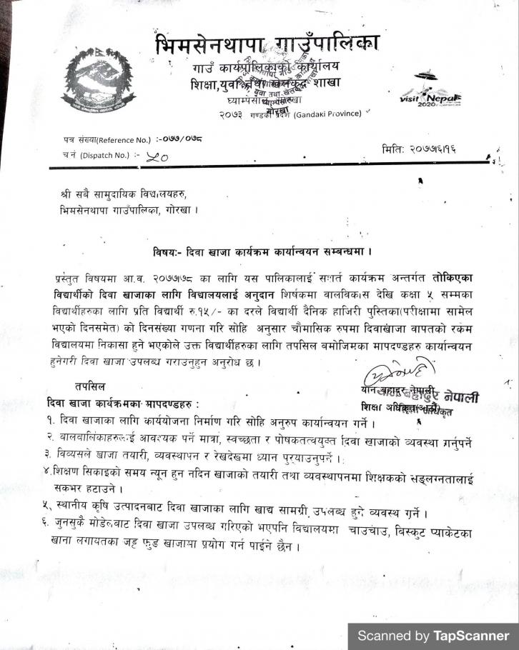 जानकारी सम्बन्धमा श्री वडा कार्यालय सबै भिमसेनथापा गाउँपालिका