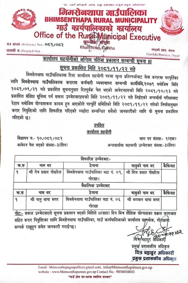 जानकारी सम्बन्धमा श्री वडा कार्यालय सबै भिमसेनथापा गाउँपालिका