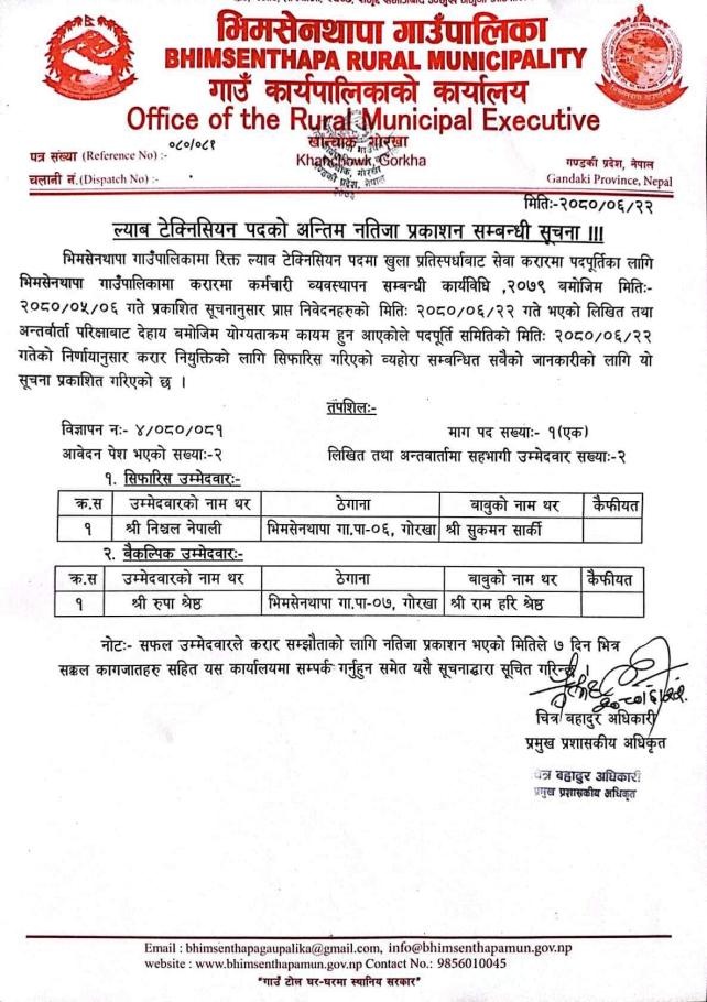 बैकल्पिक उम्मेदवारहरुको नियुक्ति एवं सम्झौताको लागि सम्पर्क राख्न आउने बारेको सूचना