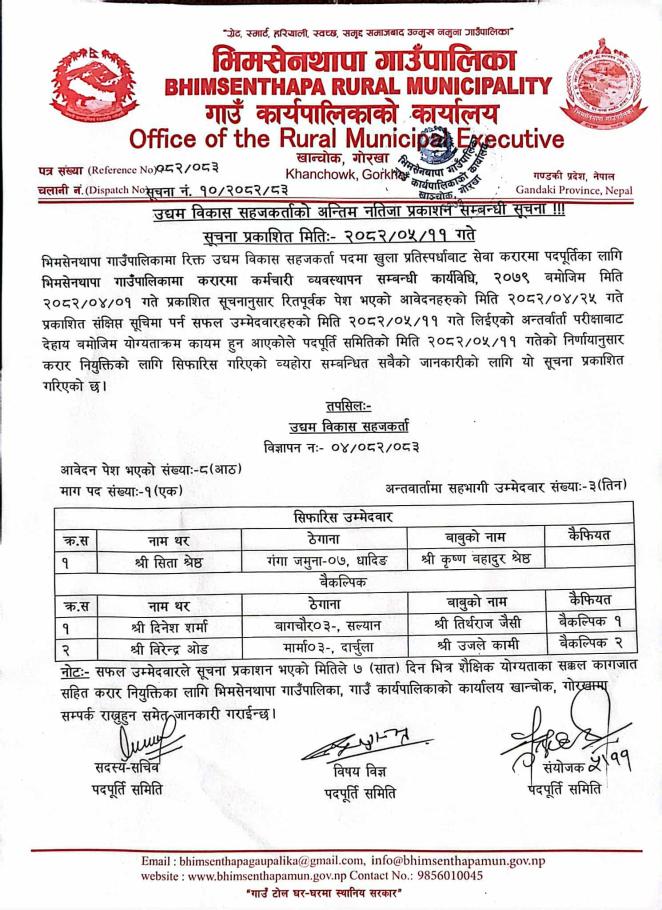 बैकल्पिक उम्मेदवारहरुको नियुक्ति एवं सम्झौताको लागि सम्पर्क राख्न आउने बारेको सूचना