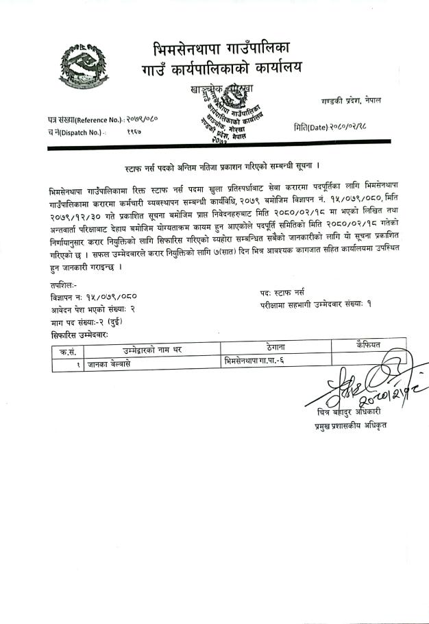 जानकारी सम्बन्धमा श्री वडा कार्यालय सबै भिमसेनथापा गाउँपालिका