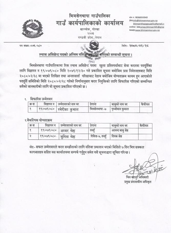 बैकल्पिक उम्मेदवारहरुको नियुक्ति एवं सम्झौताको लागि सम्पर्क राख्न आउने बारेको सूचना