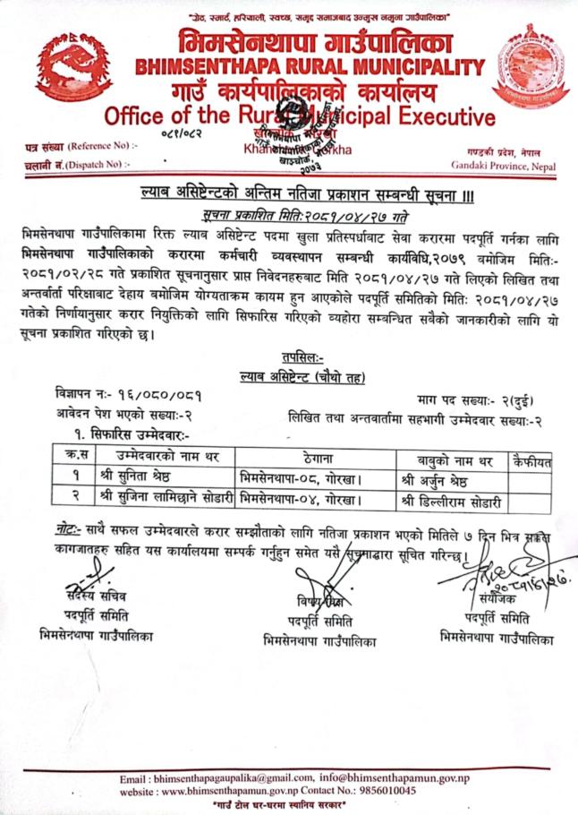 बैकल्पिक उम्मेदवारहरुको नियुक्ति एवं सम्झौताको लागि सम्पर्क राख्न आउने बारेको सूचना