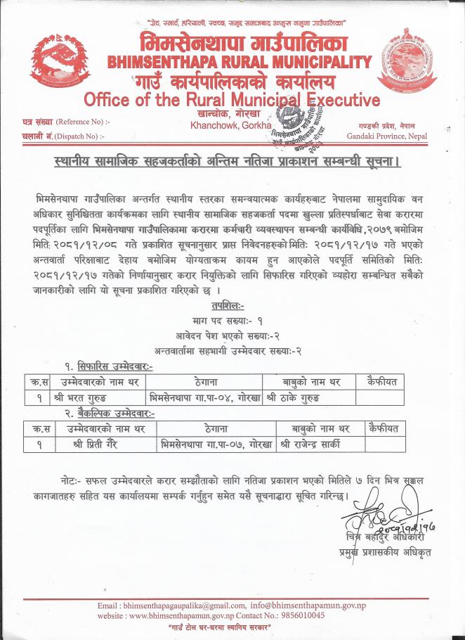नतिजा प्राकाशन सम्बन्धी सूचना।