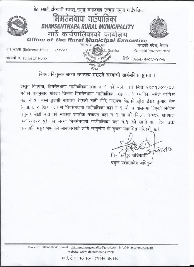 निशुल्क जग्गा उपलव्ध गाराउने सम्बन्धी सर्वजनिक सुचना ।
