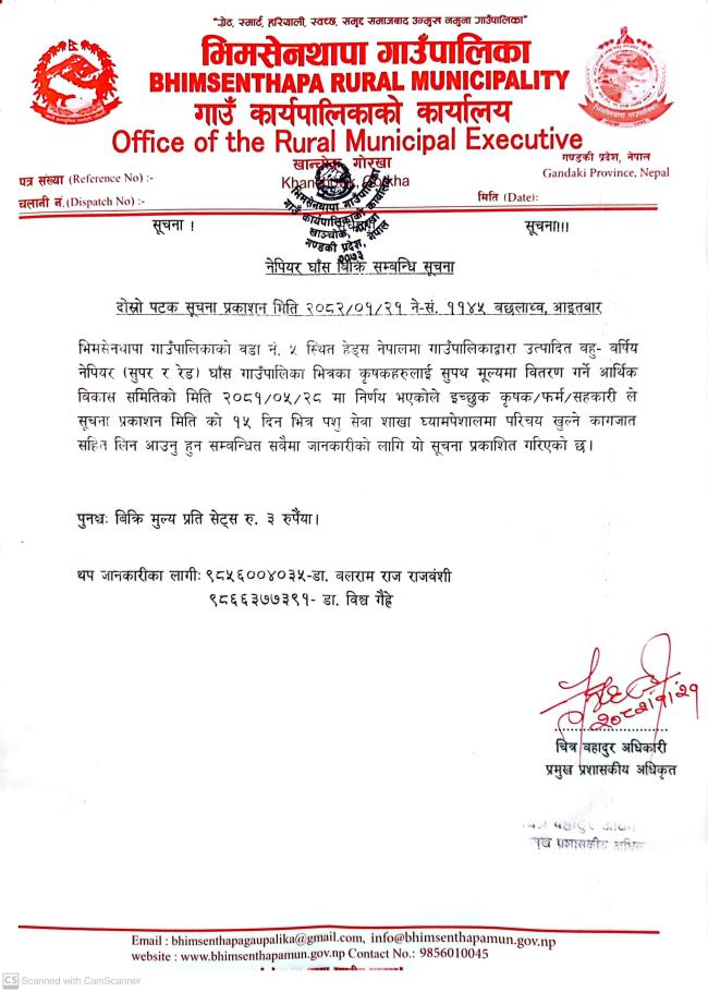 नेपियर घाँस बिक्रि सम्बन्धी सूचना।