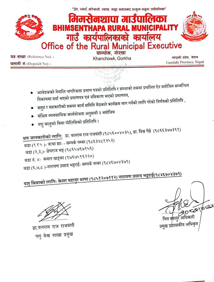 भिमसेनथापा गाउँपालिका क्षेत्रभित्रका व्यवसायीहरुको लागि सार्बजनिक सुचना ।।
