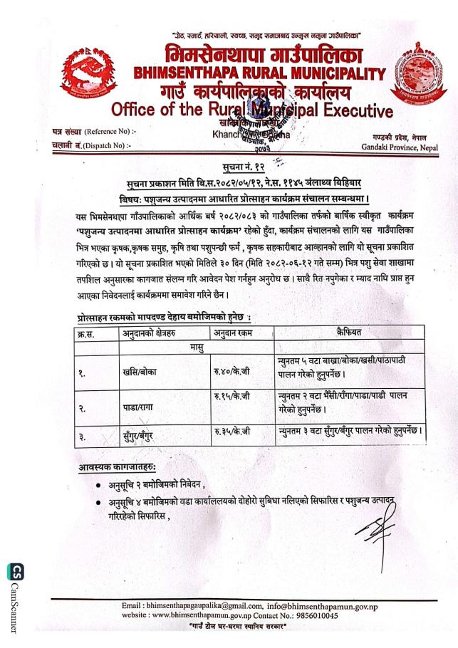 जानकारी सम्बन्धमा श्री वडा कार्यालय सबै भिमसेनथापा गाउँपालिका