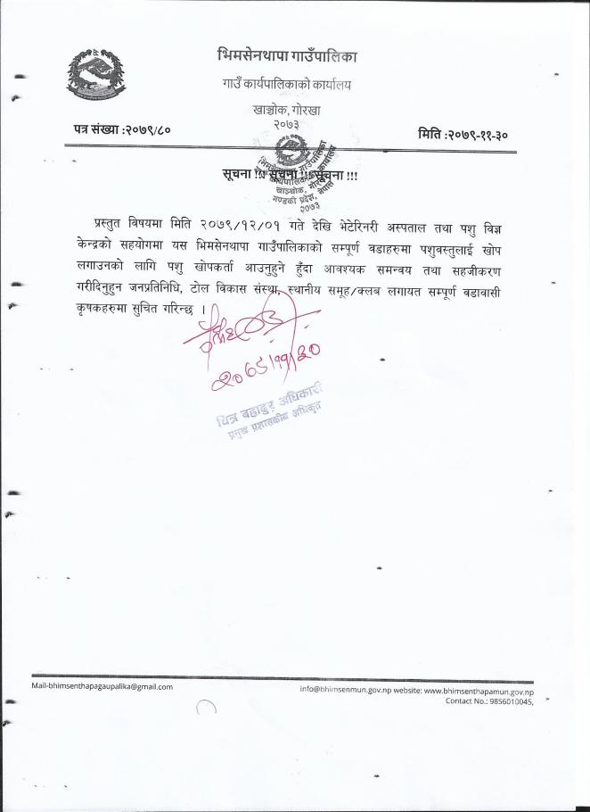 पशु खोप कार्यक्रम सम्बन्धि सूचना !!