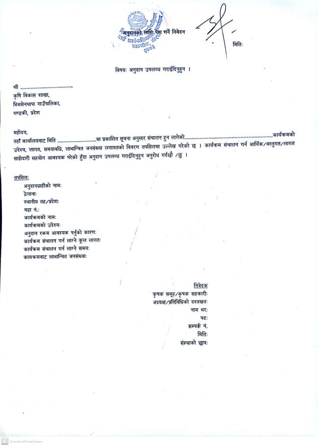 कार्यक्रम माग गर्ने सम्बन्धमा