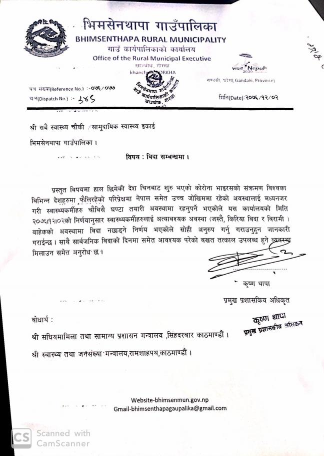 » बिदा सम्बन्धमा (श्री स्वास्थ्य चौकी / सामुदायिक स्वास्थ्य इकाई) भिमसेनथापा गाउँपालिका