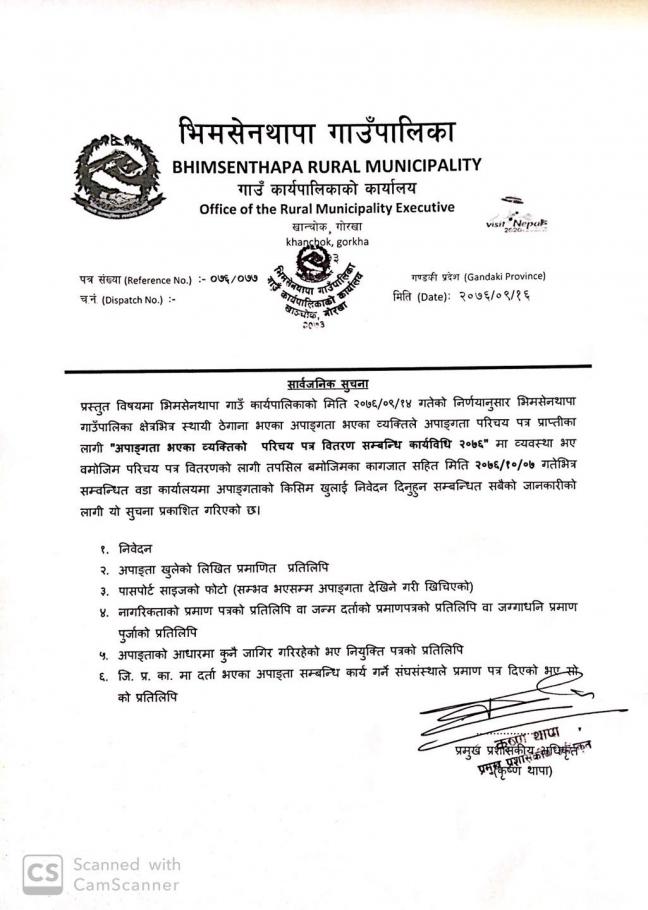 » भिमसेनथापा गाउँपालिकाको अपाङ्गता परिचय पत्र वितरण सम्बन्धि सूचना !!!