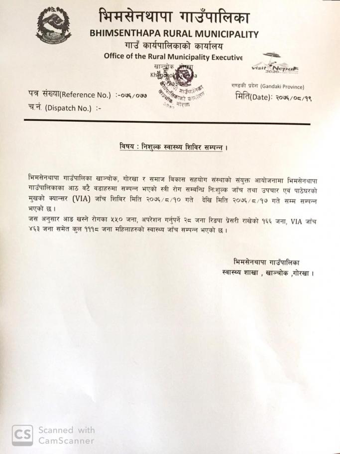 भिमसेनथापा गाउँपालिकामा नि:शुल्क स्वास्थ्य शिविर सम्पन्न