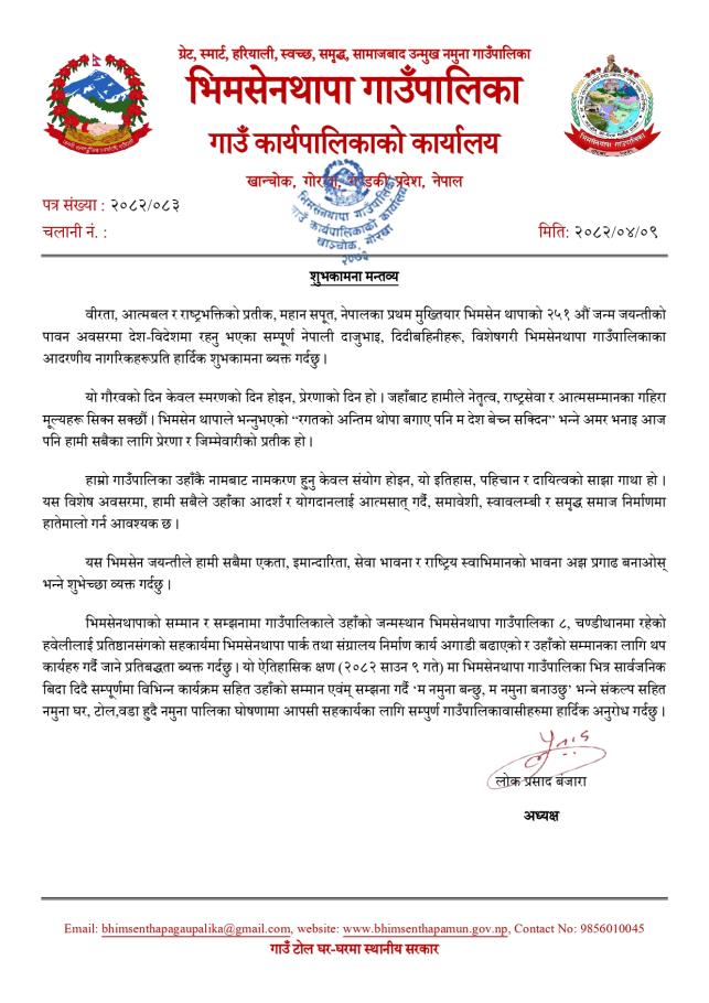 » भिमसेन थापा जयन्ती - २०८२ को अवसरमा सम्पूर्णमा हार्दिक शुभकामना !