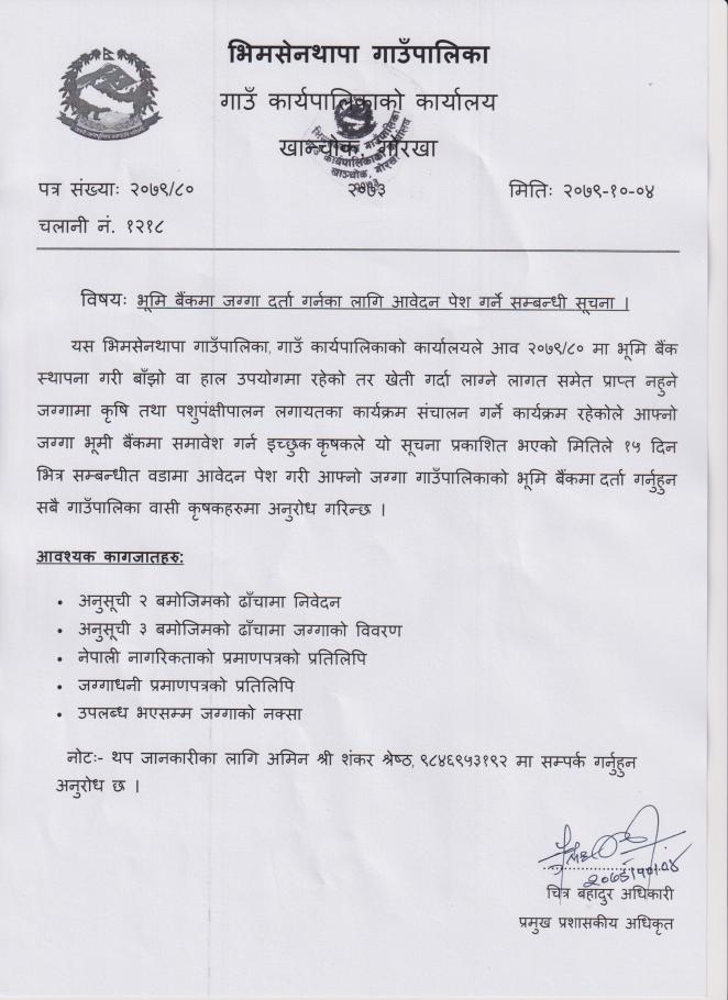 » भूमि बैंकमा जग्गा दर्ता गर्नका लागी आबेदन पेस गर्ने सम्बन्धी सूचना!!