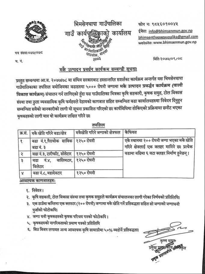 » मकै उत्पादन प्रवर्धन कार्यक्रम सम्बन्धी सूचना !!