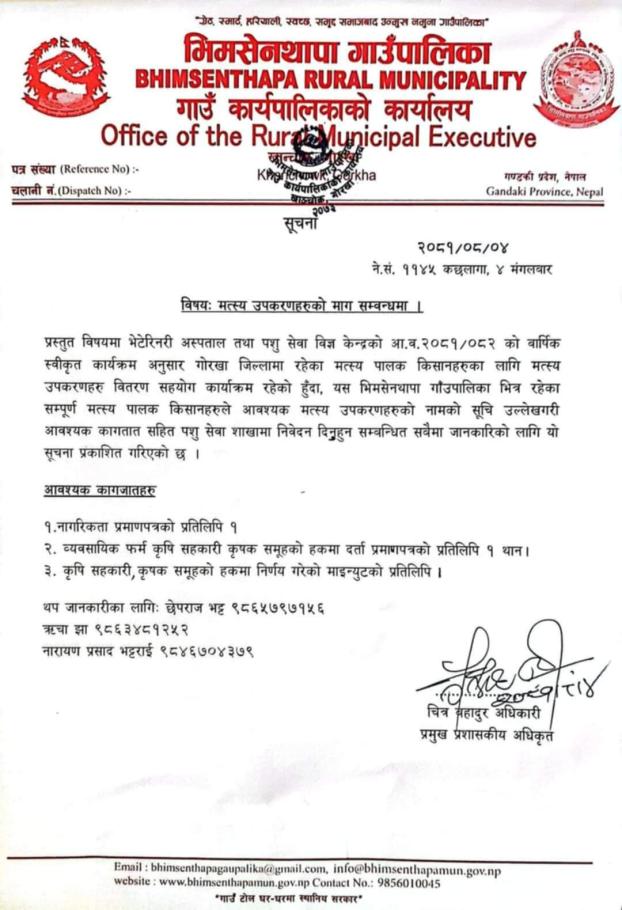 मत्स्य उपकरणका लागि निवेदन पेश गर्ने सम्बन्धी सुचना ।