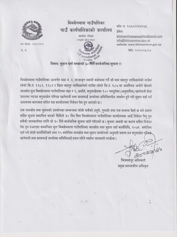 भिमसेनथापा गा.पा.को सार्बजानिक अनुरोध