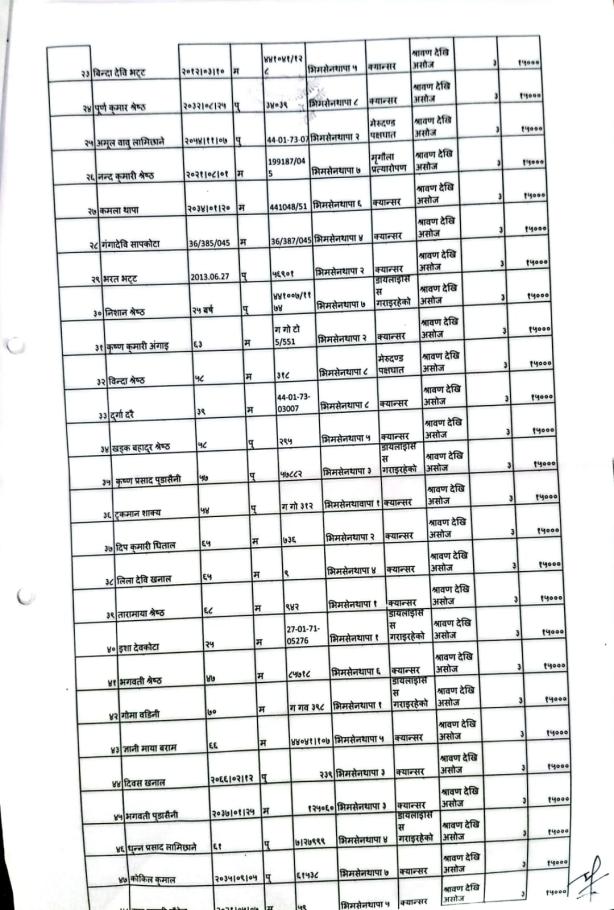 Home » मृगौला प्रत्यारोपण गरेका/ डायलाइसिस गरेका/ क्यान्सर रोगी तथा मेरुदण्ड पक्षघात व्यक्तिहरु लाई २०८१ कार्तिक देखि पौष मसान्त सम्म उपलब्ध गराइएको उपचार खर्च सार्वजनिक गरिएको सम्बन्धी सूचना।