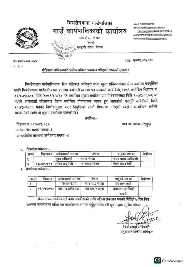 जानकारी सम्बन्धमा श्री वडा कार्यालय सबै भिमसेनथापा गाउँपालिका