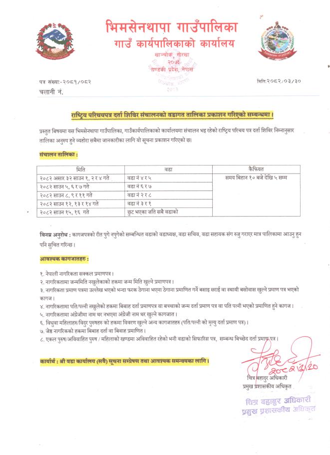 » राष्ट्रिय परिचय पत्र दर्ता शिविर संचालन सम्बन्धी सूचना ।