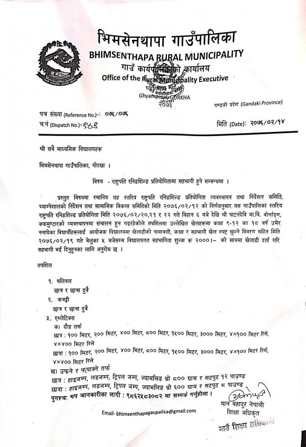 रास्ट्रपति रनिङशिल्ड प्रतियोगितामा सहभागी हुने सम्बन्धमा