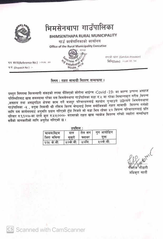 भिमसेनथापा गा.पा.को सार्बजानिक अनुरोध