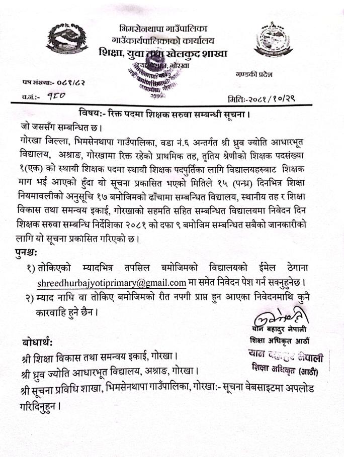 रिक्त पदमा शिक्षक सरुवा सम्बन्धी सूचना।