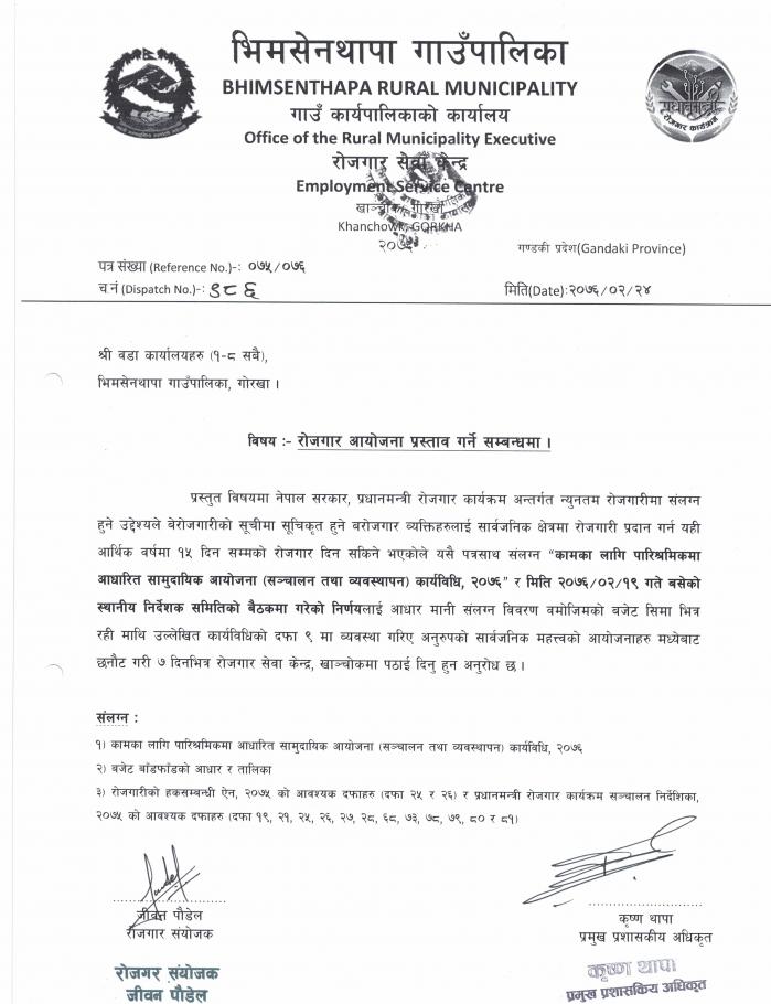 रोजगार आयोजना प्रस्ताव गर्ने सम्बन्धमा