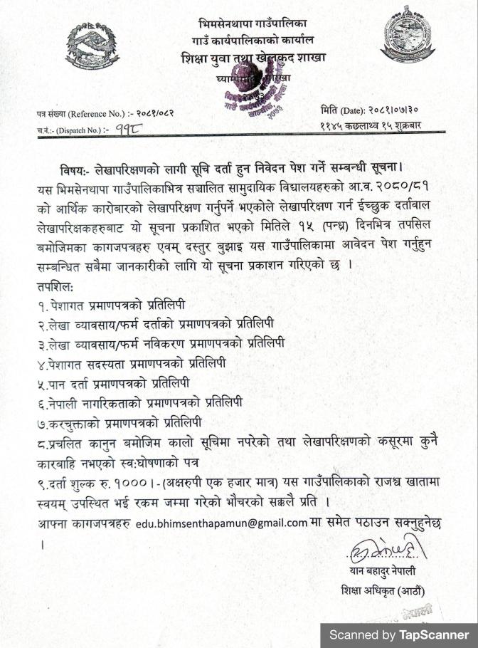 भिमसेनथापा गा.पा.को सार्बजानिक अनुरोध