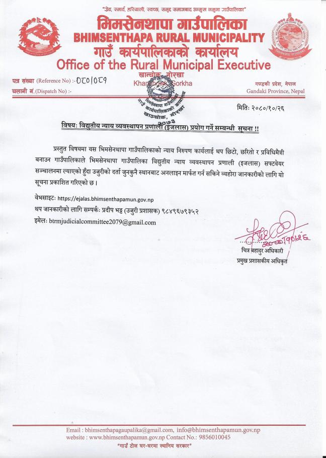 जानकारी सम्बन्धमा श्री वडा कार्यालय सबै भिमसेनथापा गाउँपालिका