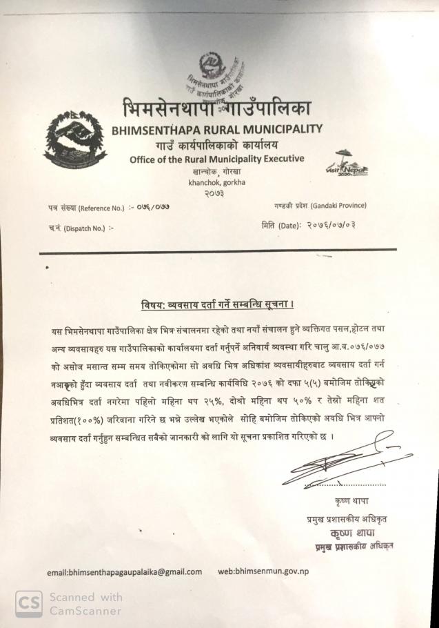 विषय: व्यवसाय दर्ता गर्ने सम्बन्धि सूचना ।