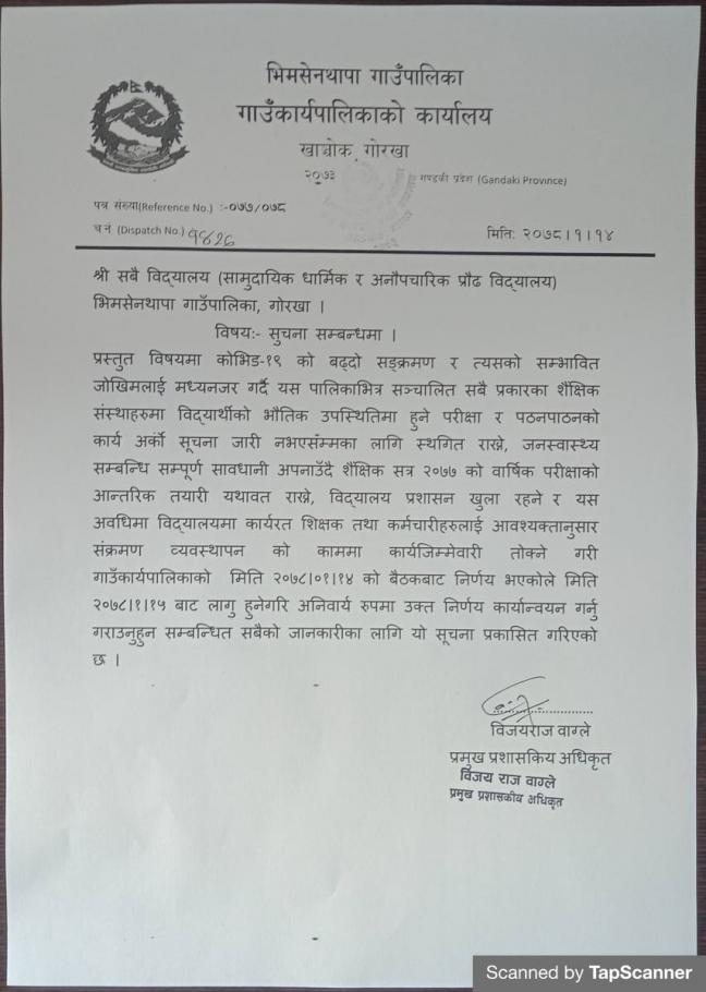 जानकारी सम्बन्धमा श्री वडा कार्यालय सबै भिमसेनथापा गाउँपालिका