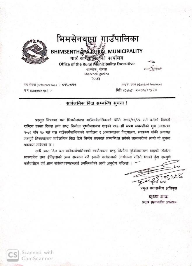 सार्वजनिक बिदा सम्बन्धि सूचना