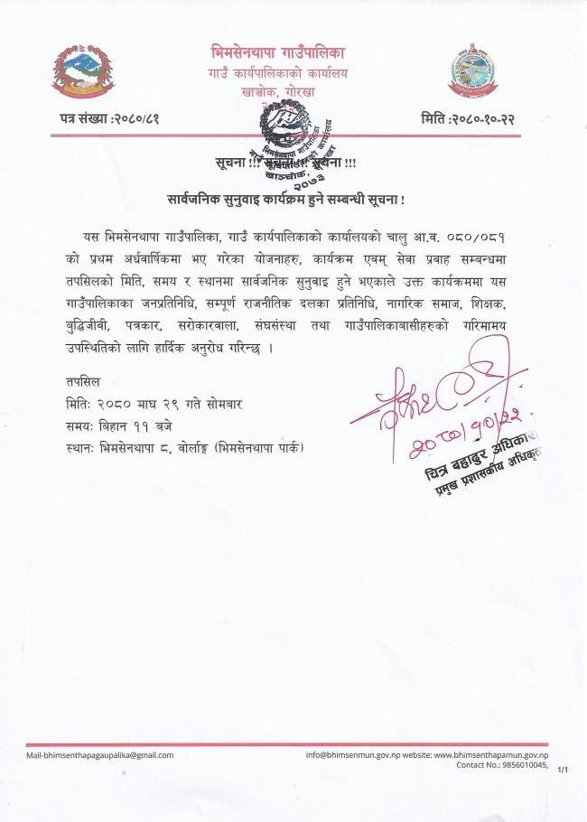 भिमसेनथापा गा.पा.को सार्बजानिक अनुरोध