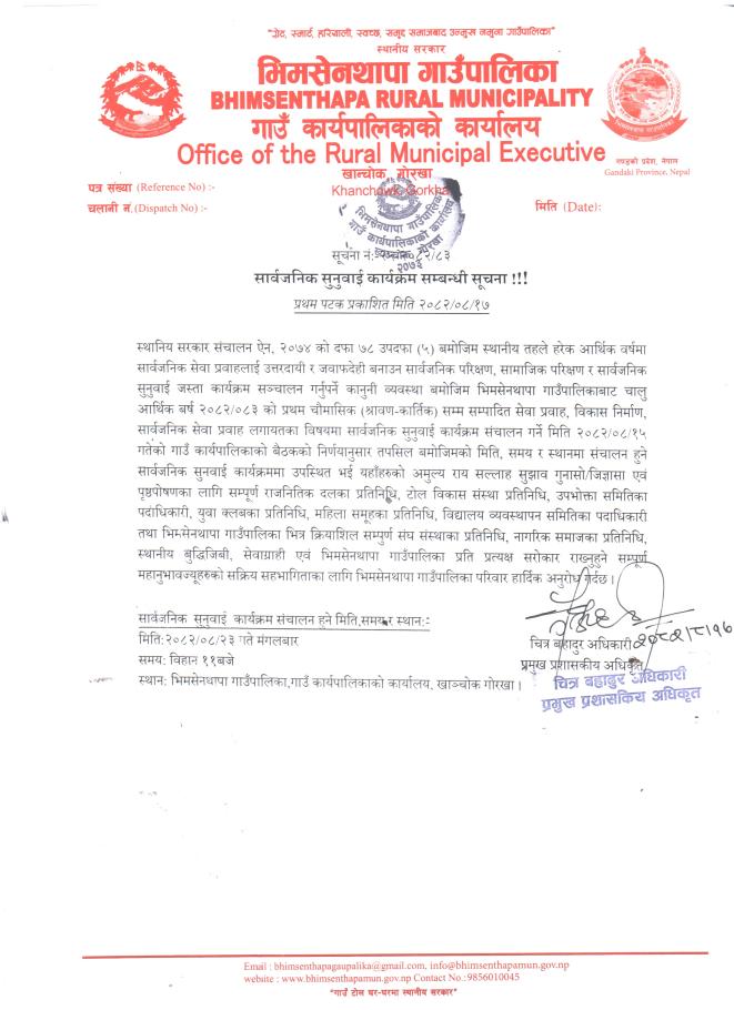 सार्वजनिक सुनुवाई कार्यक्रम सम्बन्धी सुचना ।