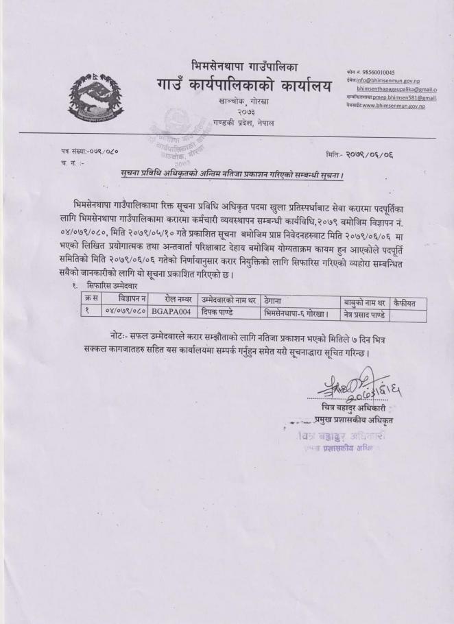 सूचना प्रविधि अधिकृतको अन्तिम नतिजा प्रकाशन सम्वन्धी सूचना