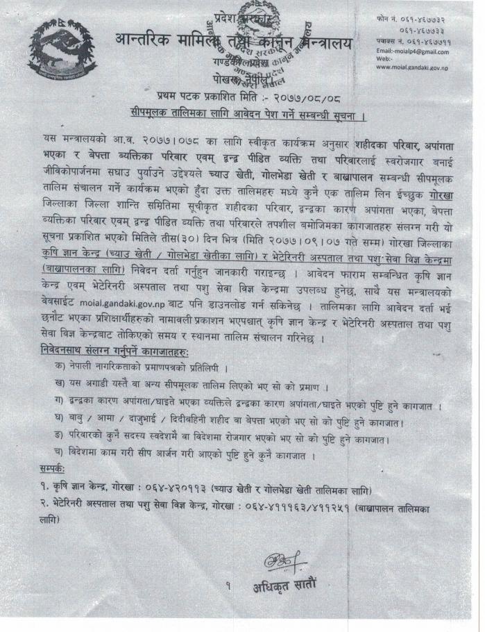 सिप बिकास तालिम सम्बन्धि सूचना !