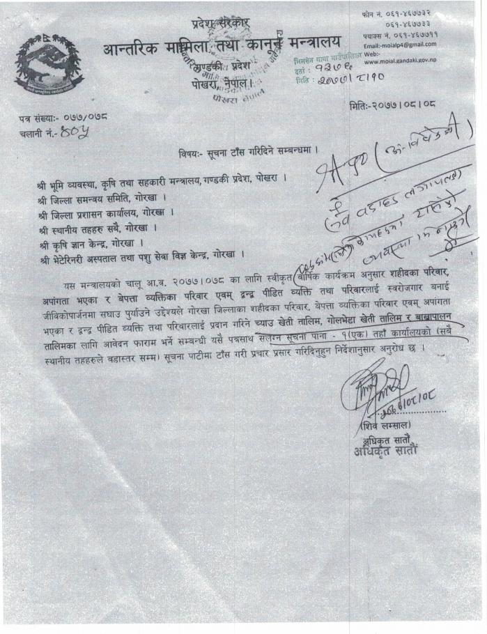 योजना सम्झौता गर्न पठाउने सम्बन्धमा ( श्री १,३,४,५,वटा वडा कार्यालयहरु )!!!