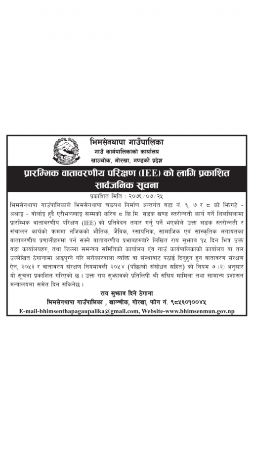 जानकारी सम्बन्धमा श्री वडा कार्यालय सबै भिमसेनथापा गाउँपालिका